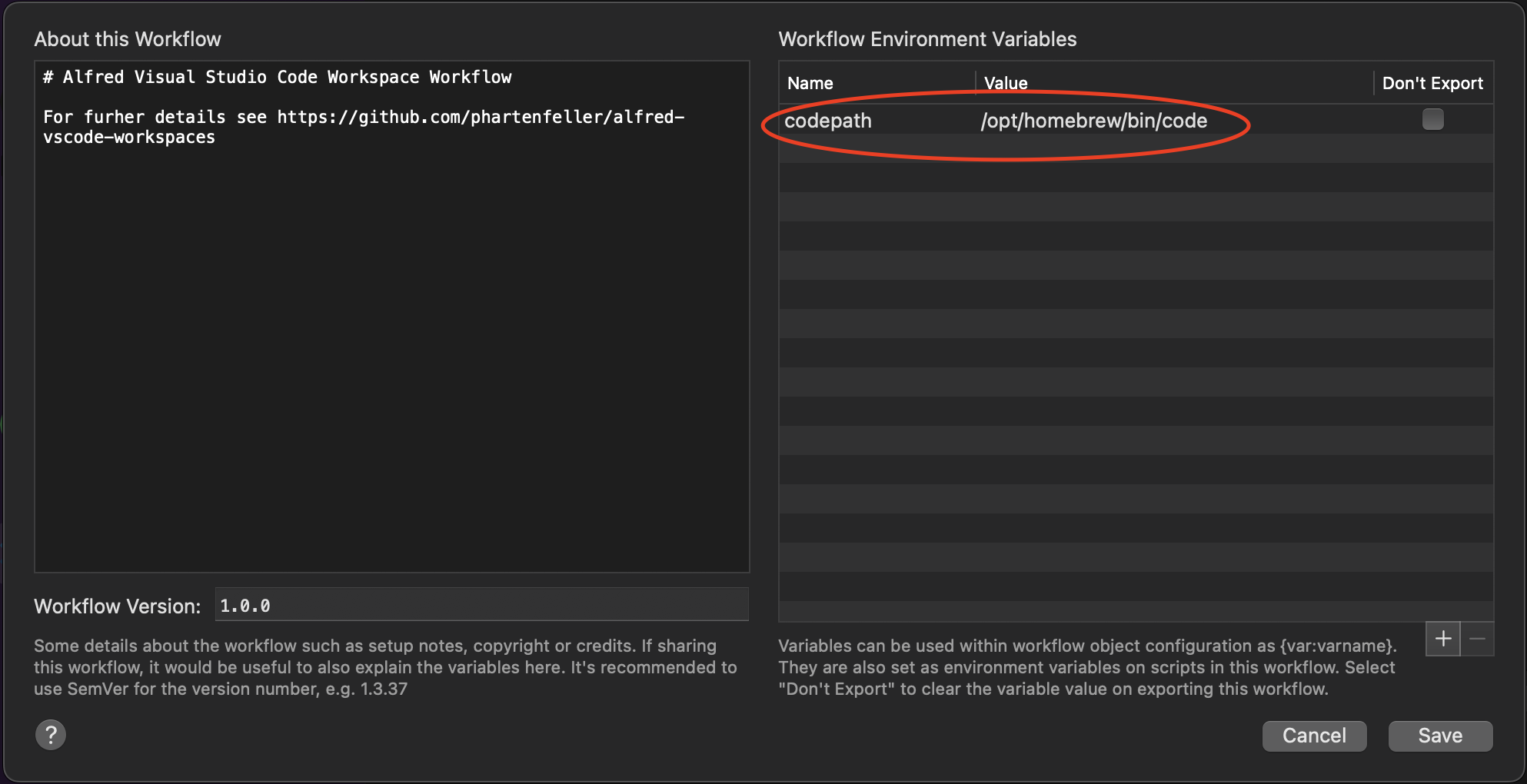 npm i -g @phartenfeller/alfred-vscode-workspaces