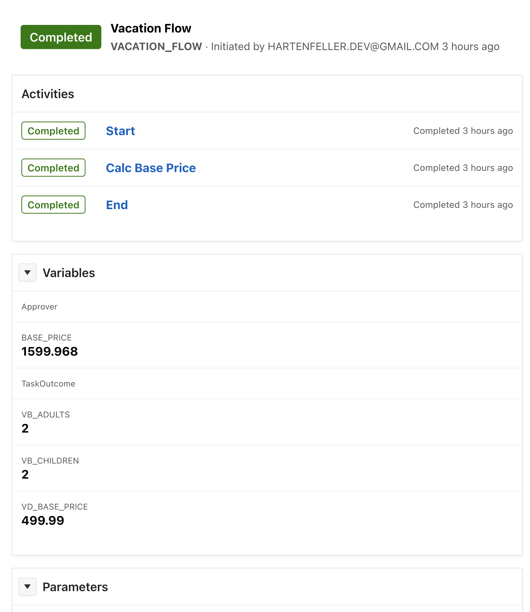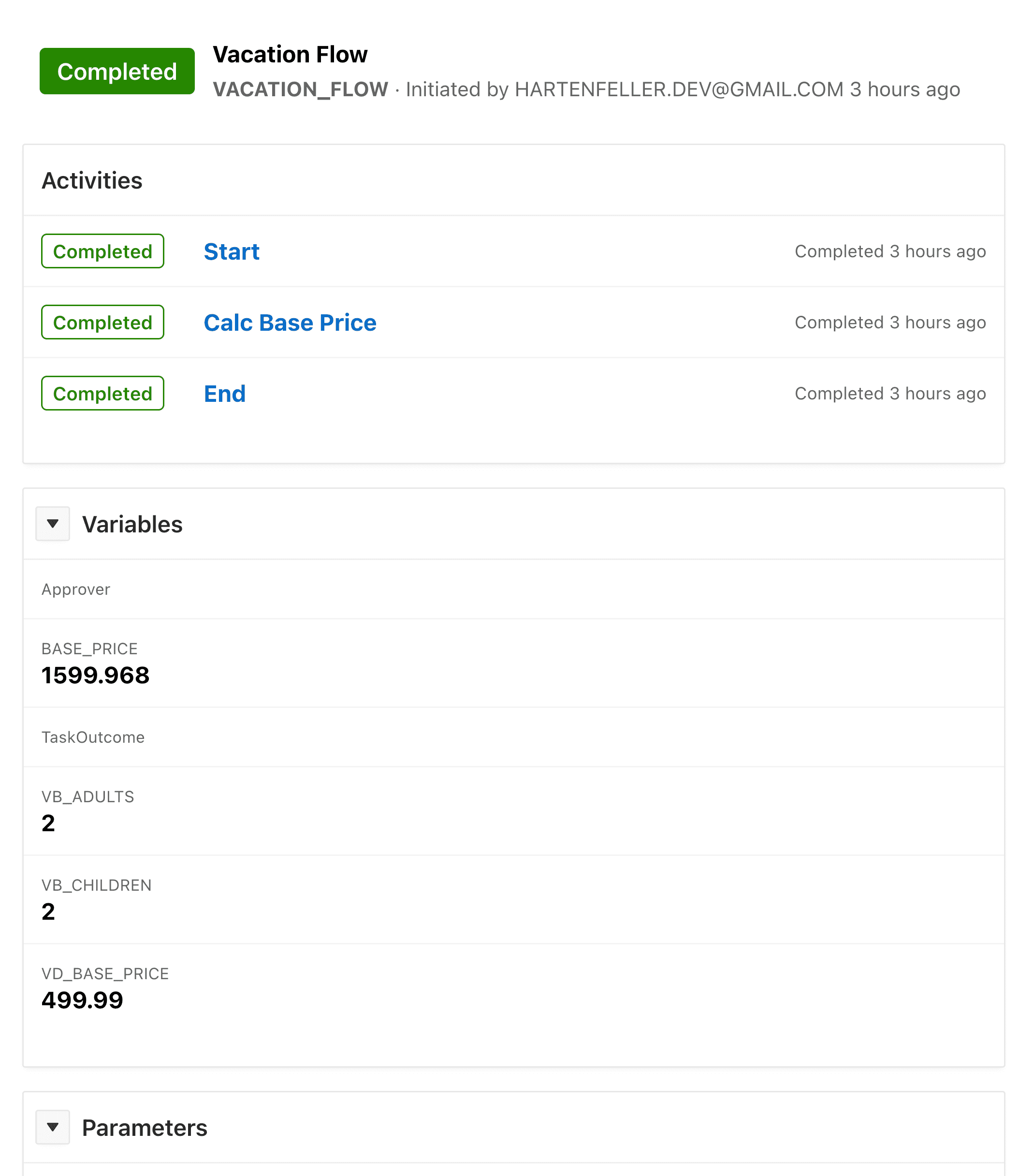 #I went ahead and renamed the workflow to “VACATION_FLOW” and gave it the same title and static ID. The child tree entry represents the current version of the flow. This means that when we want to introduce changes to our workflow, we can create a new version and keep the old one so that existing instances are not affected.