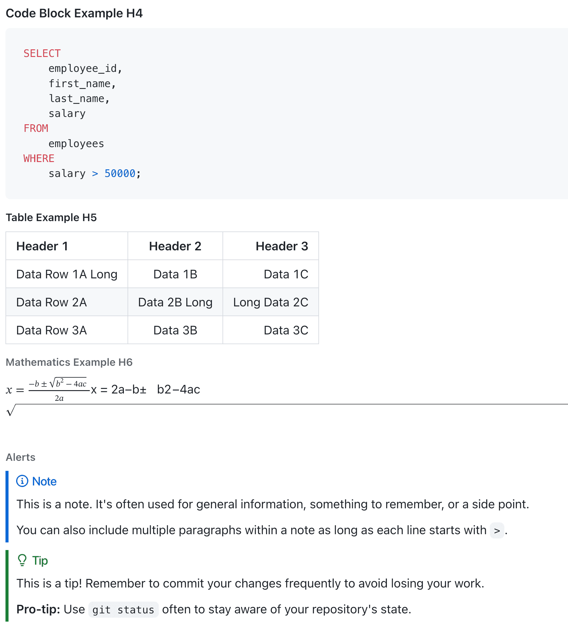 This is the underlying markdown for the above screenshot: