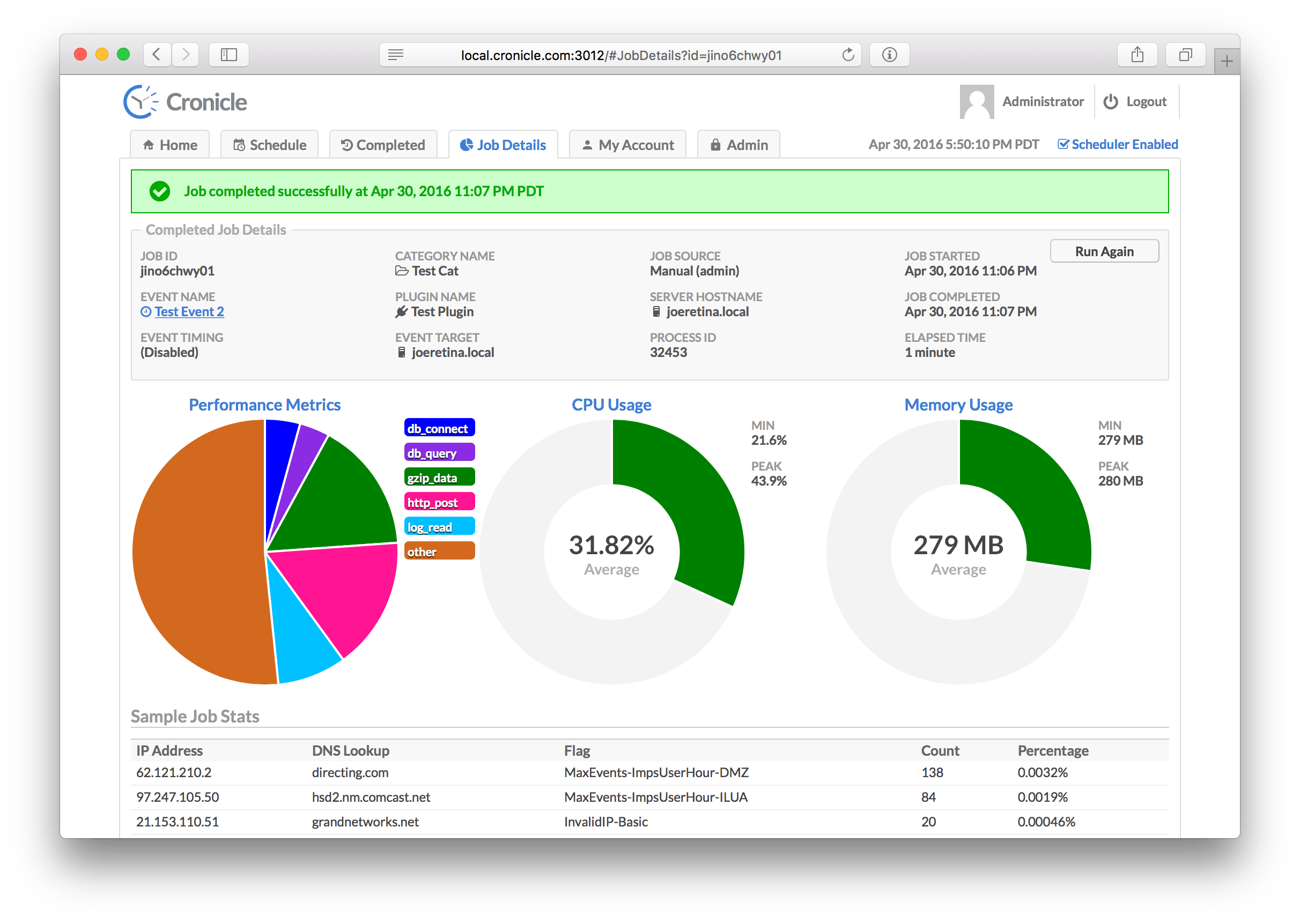 #Cronicle also has a REST-API that offers basic tasks like start a job, check if it has finished, and get the log output. You can simply start a job from GitHub actions with the following script: