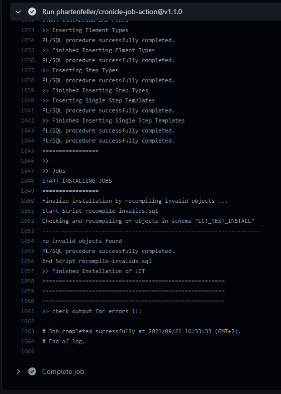 Because it just starts the Job we don’t get any info on what happens. In the GitHub Actions log, you just see whether the API call worked and not the log we get from the task itself. There is no info on what goes on on the server.
