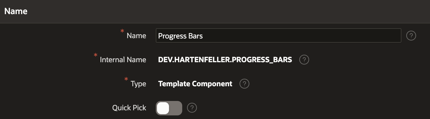 #Now we can create the Plug-In. Head to the Shared Components of any app and create a new Plug-In. I called mine Progress Bars and selected the Template Component type.