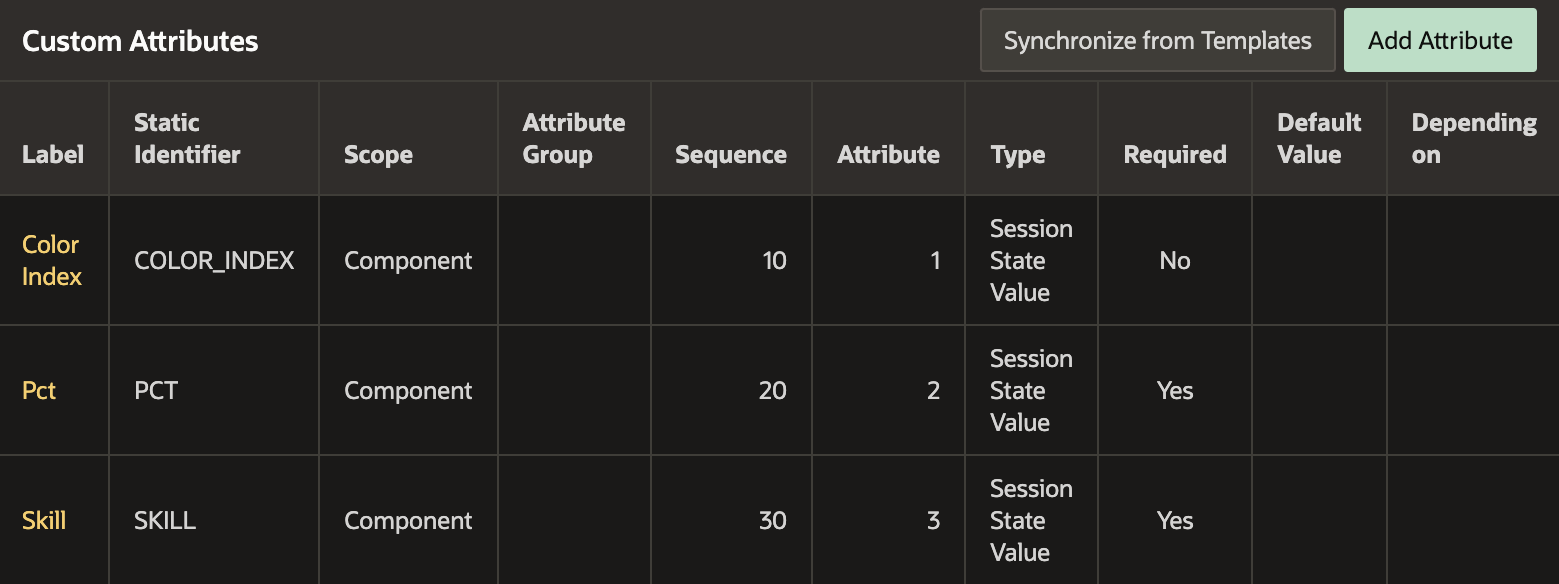 #When we then save the Plug-In, APEX will automatically extract all the placeholders and create attributes for them. You can then manage the attributes to define which ones are required, their data type and a default value.