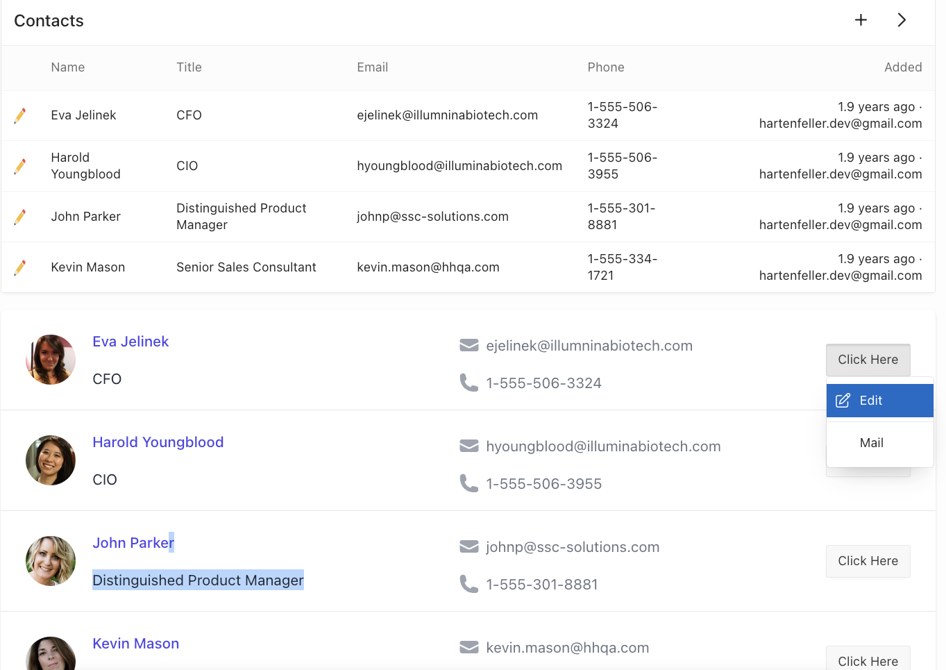 #For another example, I created a list of persons. In the sample customers app, the list of customers is currently just a rather boring looking table. I wanted to make it look more exciting and ended up with the following design (I copied from Tailwind UI):